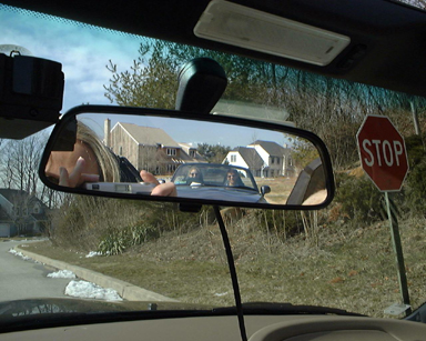 Soon we were on the road again. Wow, what a nice view in my rear view mirror. What a nice Mom, she lets the kid drive!