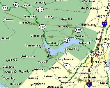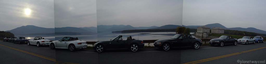 I hesitate to tell you about these roads because they are such a great secret and happily not well traveled, although very well paved. Bill Z said of Route 212, "If the Dragon is in 2nd Gear, this is the Dragon in 3rd gear." Agreed. Back up 28 to join Dar and JohnM and Paul and Irene at 28A to the Ashokan Reservoir. There is no way to photograph the scene at the reservoir, the narrow road with the fabulous water and sunlit mountains on one side and the drop into the valley with the fountains and the mansions on the other. That didn't stop us from going photo happy-