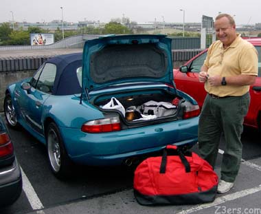 Being a seasoned Z3er myself, I knew to pack light. Still, I probably brought too much. ![]() Tim was kind enough to place the US Flag magnet donated by Skin Mechanic on the Zmurf. |