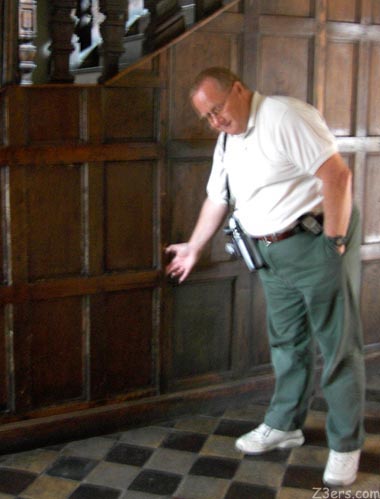 ![]() More personal history, as Tim's grandad worked in this room, which was a printing office at the time. One day while they were renovating, these paintings were discovered. Uncovering the plaster walls, historians came to understand the significance of the building. ![]() ![]() Tim shows the museum staff where his grandfather found a hidden closet under the stairs, and inside it, a book from 1649 ![]() Tim's image of the book |