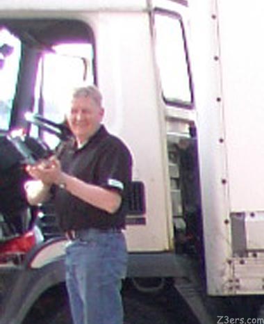 Remember, there is no steering wheel on that side of the bus, that guy in front is driving an imaginary Z3, and the two guys behind him are waving like crazy. ![]() ![]() Again we were surprised while gassing up to see this dutch trucker jump out of his rig applauding. |