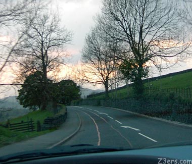 Driving into Keswick at sunset. ![]()