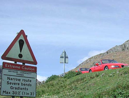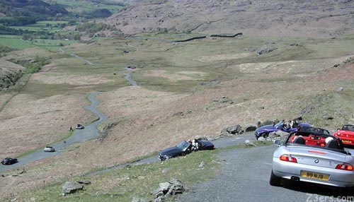 Janet Cartledge and Dai Maddock taking pics (girls, would you send me those pics please?) ![]() Thanks to Tim UK for this pic As we descend into Hardknott Pass, in the distance you can see a Roman Fort ![]() Thanks to DavidM for this photo of Tim and me in the Smurf coming down the hill |