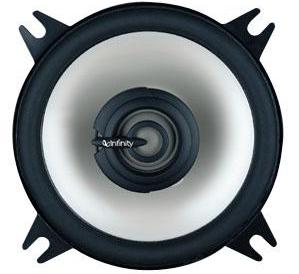Reference REF452I 4” coaxial Some people suggest either not upgrading the rears, or just getting cheap coaxials. I found that the rears do contribute a lot. It is important for them to have a wide frequency response, especially in the mid-lower end. They do not need to have crystal clear highs since they fire into the back of the seat, but the mid-low range is important. I chose the Infinity Ref 452I 4” coaxials because the featured a Plus One design which allows the speaker to actually be larger than most 4” speakers. They also have wide frequency response, and can handle a wide range of power. Using the head unit to power the just rear speakers works very well. I am very impressed with the sound quality of these rear speakers powered from the head unit. In fact the BA 6.5 woofer components, and the subwoofer get muddy before the rear 4” speakers or the tweeters distort.
