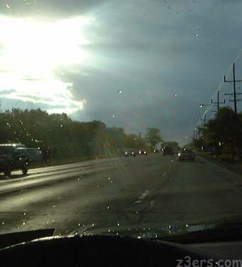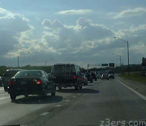 Kathy and CarlM turned up shortly thereafter, Kathy proudly stuck a printout of a post from skin_mechanic in my face when she arrived. It was a picture of a box, with my bday present inside, being sent to my house in New York while I drove west. Everyone on the Z3 planet knew what he had sent me, and kept the secret, saying only "Heh heh heh". I am still amazed that the Message Board could keep a secret like that. Pretty cool eh? Even Teachum had deleted the secret bday present files from his hard drive just in case I went poking around. JTP too. The Teachums and the Melbys had the sad journey ahead to share the burden of the loss of family of close Z3 friends. Nice friends who come out to stand with you when you have to bury a parent, even if you have to drive 4 or five hours and leave the Z3s at home. In a suit. We sent along a banana bread with our sincere sympathy for their loss. They went one way on dreaded 294 and we went the other, North and West please. I 294 still sucked as bad or worse than it did when we arrived and within a short time we abandoned it again. I could not for the life of me figure out why so many people were in a rush to get to Wisconsin. It took some poking around but we finally found a backroad that would take us all the way to JTP in Wisconsin. Route 14 was- as the French say, "pas mal". It even had some nice bits. |