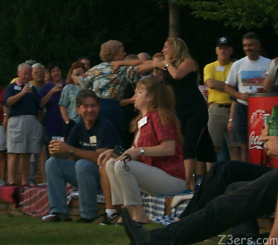 We took the long beautiful walk down the Sea of Z3s, met friends, checked out the cars and the vanity plates, and finally joined the hundreds of Z3ers who were already amassed in the outdoor semi circle. I met Jake Spruill, leader of the Coupe Group and the one who showed the Northeast Convoy a couple nice roads on the way to HC. Speaking of the Northeast Convoy, Fred Kern not only lead the Northeast Convoy with meticulous care - he got Mom to come back to Spartanburg! This year they set up grand buffet tables instead of box lunches. It was huge undertaking especially considering they had shut down the main thoroughfare through the most popular section of town for several blocks for an entire Friday night at the same time, while having a hot little band and a fireworks display- and a giveaway of a backpack encased picnic dining set to every car! BMW Manufacturing rocks. This was all their doing, the police, the Peace Center Staff, the food, the gifts, the music, the presentations, the pyrotechnics, the cars, Homecoming- everything. ![]() JonT is having a good time ![]() The band was GREAT, Deni (WA) and I were dancin...