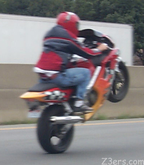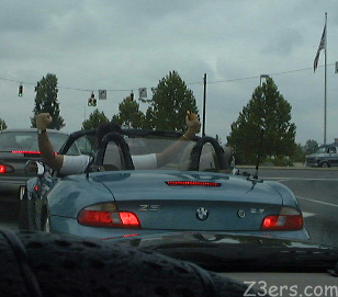 At first we hit a nasty storm. Easy top up stop and then a top down stop and we were cool again. JonT snapped this fellow on a motorcycle hamming it up.