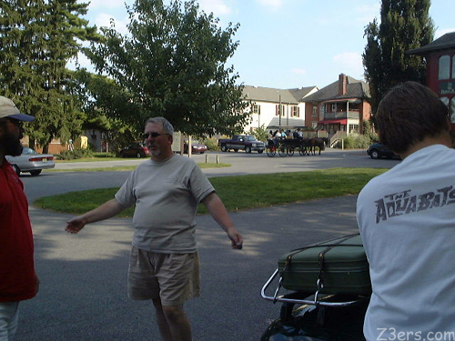 Monday- Day 8 We had an easy time of it- no traffic. JonT and I used what we had learned on the way down about circumventing Hburg. We took the same road back down to Intercourse with Big Daddy and Drew, and stopped at the same nice restaurant where Stu took his Winter Wonderland Drive 2 years ago. (Intercourse with Big Daddy is an experience to remember ;) ) ![]() ![]() A Dark Green sandwich with a Boston green stuffing. ![]() Not exactly sure why Big Daddy is dancing in this pic. Maybe he always dances while in Intercourse. ![]() Contrary to what you may have heard, it is easy being green. We drove through the Lancaster Amish Country a bit and saw the horses and carriages. The Green Vortex had a college buddy to meet up with so we bid them farewell at the exit for Route 30. ![]() |
