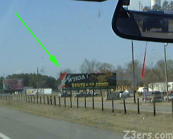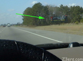 ![]() 473 miles later... Next morning the sun was shining. Packing up was a breeze and breakfast was easy. I could not help myself. I put the top down. ![]() ![]() On the road again at 830am and running down the highway. I was having way way way too much fun. By this time Jon and Mike were posting for me on Caranostra Message Board and Beth and Judy were thinking about joining my little caravan of one. I was just thinking about how I had no food and water bowls for Rock for the next hotel. The Residence Inn had a kitchen, and plenty of bowls. I had one extremely nasty moment when Rock nosed the opening of his carrier open while the top was down. Thank goodness I had a collar and leash on him, I used it to shove him back in while pulling off the interstate. In one flash it nearly all went to hell. Speaking of Hell, there is this place called "South of The Border". Everyone has seen those wretched black bumper stickers with the day-glo sombreros. They are not from Mexico, they are from South Carolina. You see them for miles and miles, but within 20 miles you see them every time you look up, to the sides or behind you. They are everywhere like the sirens of Odysseus, marketing sirens luring you to their island of kitsch. As I passed each one, and read each one- to the detriment of my driving- I swore I would not stop there. I was going to prove the point that I would not be so easily marketed. I was hungry and I still would not stop there. Not for a photo op. I looked and Rock and promised him, no stop at South of the Border. I had read about this and decided to see how many of the signs I could catch in the 17 miles left before South of the Border. Check this out: