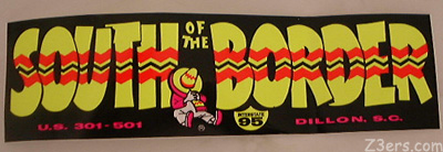 ![]() I made it out of there with two South of the Border bowls for Rock, those wretched bumper stickers, a South of the Border snowball and a road map of the East Coast showing how far you are from South of the Border. ![]()
