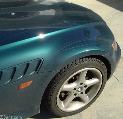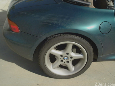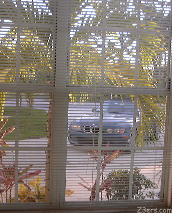 You people with attached garages have zero excuse not to have an immaculate car. I have time to see things now that I hadn't dreamed of before. I even cleaned and polished the back window. All of it. No problem. Every time I have to put something into or take something out of or carry groceries into the house it takes me a while to stop staring at the car. I mean, I had read all that stuff about "You know you are a Z3 owner if" and how people have to put down paper in the garage for their drool.... But it's 5 years later and it's still TRUE! I mean- this time last year I was washing my car in the snow .This year is different... ![]() ![]() I thought it was interesting the patterns that the dirt made on Emmy. Is this the aerodynamics of the car? The path that stones take before they chip the paint? Jeez I love those curves.