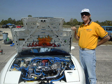Then something else caught my eye...![]() ![]() This is Russ Silber's Miata, and this is Russ Silber. This is one helluva nice guy with all the right toys...He said his wife made him get the flames painted inside his hood to remind him that engines catch on fire...