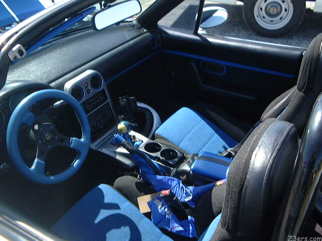 ![]() The more you look at this car, the more there is to see... S u p e r c h a r g e d... Heyis that blue meant to match all the other blue accents? ![]() And uh.. what is that on the barn door? (miata term? Help?) Where it says "Zoom Zoom" in such lovely blue letters... usually a headlamp....