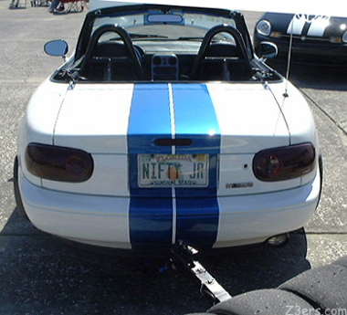 ![]() That there is the intake for the supercharger... uh huh... And the interior... more goodies than I had time to check out... took the pic and ran... ![]() ...around the back... already impressed by the trailer set up (gee why is there such a fuss about trailering a Z3??? Miatas do it... so like... uh...)
