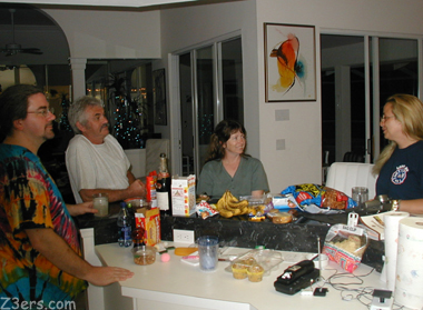 Have you seen my parents? Ja, we're having dinner... ![]() It's alllllll junk food. Tortilla chips and Kit Kat Bites and popcorn and pretzels and pina coladas and .... ![]() ![]() Brent writes: As we lounge hidden away from the scurry of the outside world we quickly became a smiling laid-back troupe. Still very much digitally attached if need be. Jon and Rachel had the laptops going via Ethernet connections. From these stations we could keep tabs on the outside world and throw a pun or two to those still in the frozen worlds north of us. Not as easy as it sounds due to pruney fingers from hours in the pool. Such are the hazards one endures. ![]() ![]() |