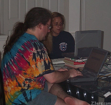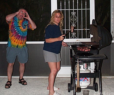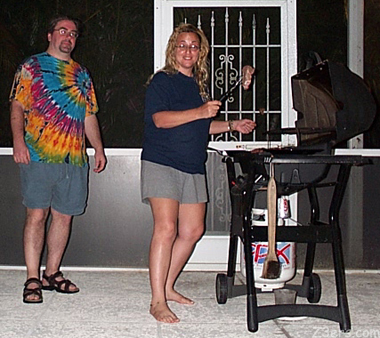 in ParadiZe Brent writes: Steak night I was called upon to retrieve an ingredient forgotten during the grocery forage. Matt and I jump into the little Z3 and down the street again during perfect top down conditions, such hazardous duty. An hour and a half later we are lost and realize we may be eaten alive upon return. Ja, too darn right! I ended up cooking the steaks! ![]() ![]() Well, Matt got his seasoning, we ate great steaks, I learned how to use a gas grill and Rock was happy we didn't cook him too. ![]() ![]() Jon writes: Somewhere around the evening, I got Rachel's and my computer working on the Cable modem. Somewhere I do recall being amused by a few war stories from Brent. ![]() ![]() |