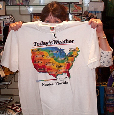 ![]() I do not know what strange sickness overcomes all of us ZnowbirdZ that makes us so happy to gloat at the freezing people back home... Connie found this lovely t shirt, and Matt bought us all this wonderful post card... I bought some more music to swim by...