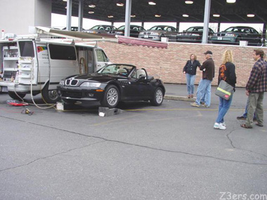 ![]() ![]() My Daniels tech was Rudy Neher. Dinan Software -- yeah baby. Probably the best modification I have done. Bought some part goodies: front mud flaps, exhaust tips, license plate frame. What a pleasure it was to be at a BMW dealership and treated like a king...given the straight scoop. What a wonderful experience to spend a whole day gloating over Z3s. I had a wonderful time and look forward to HC even more. Hopefully I will have my vanity plate by then and it will read: TUXZDO Thanks a million! I'm already looking forward to next year's Fixit-Day.... hummm, what do I want to have done? Hmmmm, let's have another look at that White Leather interior please Bud.... I have never seen that before!