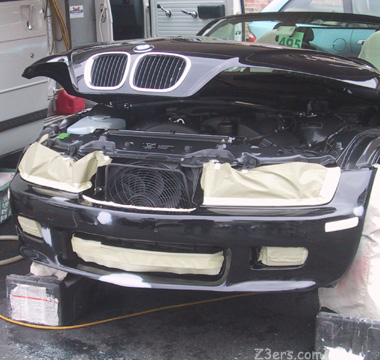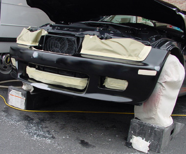 Front spoiler mended. Front and back spoiler/bumper cover painted