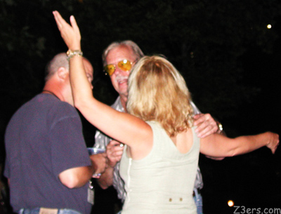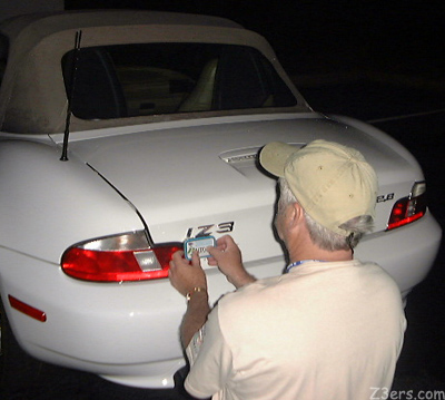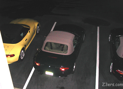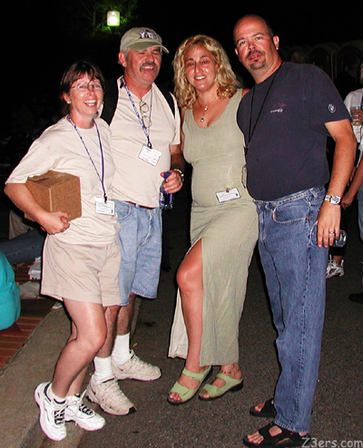 ![]() ![]() Originators of the Z3 community, those who led the way in many mods and fixes, Bryan from Texas- (if you have a Supersprint on your six-cylinder you should probably thank Bryan, he surely corrupted me, if you have DTM tips you should thank him and his Elephant (anyone have those links I lost?) twice. Also see his definitive post on MZ3.net). In fact, Emmy is in a lot of ways just following in Bryan's Boston Green '97 2.8 footprints, blaring the Rolling Stones down the Dragon. You can see more of Bryan's car on page 70 of the December '98 Roundel Magazine. Bryan and my Boston Green/Black 97 2.8s are front of the Homecoming Panoramic together in 2000, Bryan also proposed to his wife Jean at HC 2000. That's BruceT formerly of Chicago in the yellow glasses, now of South Carolina post- Dragon new tradition Thursday pre- HC BBQ host this year... owner of the highly Dinanized and modified ADLT TOY Bright Red 97 2.8 who came from Chicago to Fixit Day last year... we're having a '97 2.8 secret official meeting when we were joined by '99 2.8 owners Brent and Connie from Missouri, carrying a gift we were each given from the generous folks at Zyml this year. ![]() All too soon we're back at the hotel with another of the great things about Homecoming, getting a room that lets you look at your car, and seeing it next to a friend's car, like this shot from JonT's room looking at his car parked next to Originator KathyM's GELB Z3 Mroadster from Chicago. Brent demonstrates the proper techinique for adding an "I" to your "Z3", lining it up with the offical lining up tool, an Altoids box. This way, when 20 Z3s pass another on the road and they yell across the highway "HEY HOW DO I FIND YOU?" you can just say "iZ3" and when you pass them, they will get the url. :) Easy to remember, and an oem BMW part (part number 51-14-8-108-831). One more piece of chrome for your car...