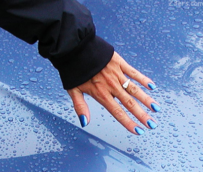 A quick check of the booths find owner-vendors Devon and Beverly from Texas at their Roadster Valet booth, and Beverly's got paint matched Estoril Blue nails! (Waiting for her to tell us the polish information, I will add to the Z3 Girls/RoadsterGals nail polish code list, working on it.)
