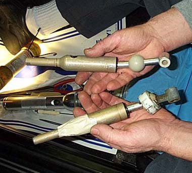 Once the stock shifter was removed, a side by side comparison with the short shifter shows a longer area below the pivot ball on the modified lever at top. ![]() Before installing the new shifter, Mike attaches the nylon cup suspension unit. Liberal amounts of the SuperLube are applied to the pivot ball, nylon cup and the hole where the selector rod and yellow washers go.