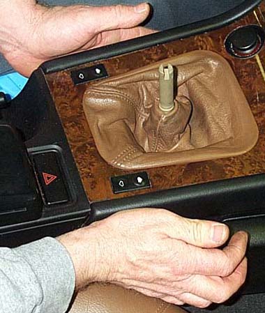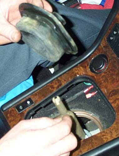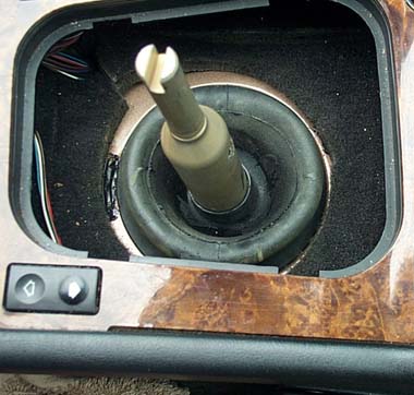 Mike is using an extendable tool to help insert the selector rod into the bottom of the shifter. ![]() After the selector rod is connected, it's held in place by the circlip, just barely visible below the shifter. Thanks to Rich Carlson for this photo of the circlip in place. ![]() Rich writes: This is an e36, but it look sthe same on the Z3