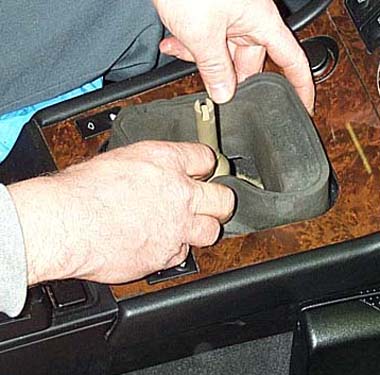 ![]() As he was finishing the shifter install, Mike noticed that the cover on the passenger side of the console was loose. The internal post holding it in place was broken, so Mike applied a rubber caulk-like substance as an adhesive.
