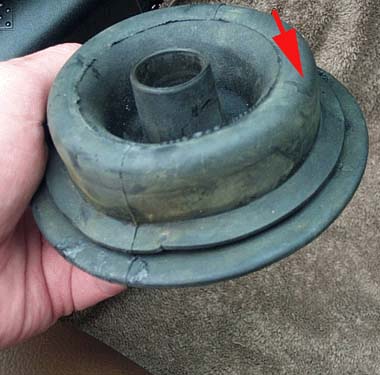 ![]() Next, it's time to reinstall the rubber inner dust cover, foam insert and shift boot. Note the orientation of the inner dust cover, the red arrow points to the arrow on the dust cover.