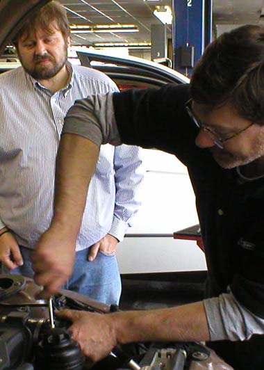Fixit 2003 DaveT Dave writes: The fact that I missed last year's Fixit day due to a emergency at work increased my anticipation levels for Fixit '03. Having a box of new parts sitting in wait made the waiting more intense. This year I wanted to have Daniels install a Ron Stygar short shifter and a Dinan Cold Air Intake. Afterwards a visit to Rigalis leather care would repair the wounds to my driver's seat bolster. The short shift: I had recently installed Doug Whalen's highly polished stainless steel shift knob and loved the reduction in the shifting throw offered by the shorter, heaver knob. I quickly realized I wanted more.