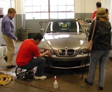 Fixit 2003 Tim and Sandy's Xpel Here Joe is installing Sandy's Xpel headlight protection. Joe and Lazlo can custom cut the plastic for on the spot protection, even better than the kits. We totally lucked out finding Joe and Lazlo at the last moment. Headlight and foglight protection is a no-brainer. It's unnoticable and they will pay for your replacement if you need it. Lights DO crack and they are many $$$$$, just for the parts. If you haven't got Xpel, get it! Laszlo R Keszthelyi Monster Coatings Inc 13 Barthold Place Garfield NJ 07026 www.monstercoatings.com (coming soon) 973-983-7662 monstercoatings@hotmail.comThanks Lazlo!