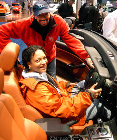 NY Auto Show 2003 See also: Jon Trudel's story and pics April 22 update from NY BMW CCA member Al Lee: " I attended the auto show 2 days in a row, and had the good fortune to be able to attend the BMW preview as well. I went a little (a lot) camera crazy and thought I'd toss in my auto show pics as well (no stories though!)." Day 1 Day 2 Enjoy! -Al Thanks Al! Sorry I missed meeting you! Next time, OK? :) I think we get the reference! The little CPO Z3 stashed in a corner - at least was kept company by a wall mural of the curves she deserves... and Andre's wife made her best pitch for a new M3... Look Honey, it matches my jacket! BMW Product Manager Hennie Chung revealed that this gap by the intergrated tonneau is bugging some Z4 owners so they are working on an "insert". She describes the Z4 as "Second Generation Premium Roadster". Later it was revealed that the X5s will get a "facelift" in 2004. (If the X5 gets a faces lift during it's model run, and the Z3 got new hips during it's model run... does that mean the Z3s got liposuction?) Much talk about new Alacantra (spelling?) interiors... now where did I hear about that before hmmm? |