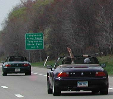 It's a good thing Jon knows how to get out of Easton onto 611. Look how small our cars appear beside other cars. Jon's car would disappear behind that sedan. Wheeeeeeeeee! Wheeeeeeeeee! |
