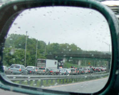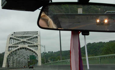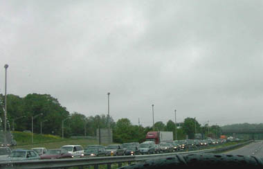 Late start, rained on, even the rain was leaving dirty grey spots on my white shirt before I pulled off under a bridge to put the top up. Then, a standstill. I called Jon on his cell phone and found out he was in the same traffic jam a half mile ahead and they were diverting traffic at the next exit. We were close enough to use talkabouts so we didn't have to stop at the meet point, we were already met. 20 minutes later I was watching the poor suckers coming the other direction get stuck in the same traffic jam. Over the bridge in Easton to Pennsylvania