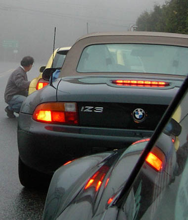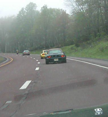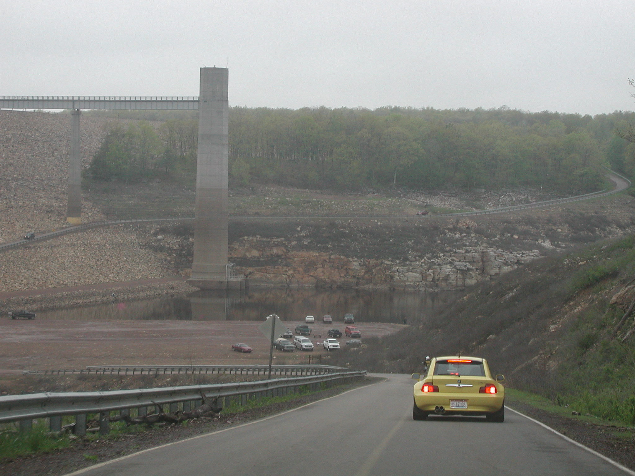 The nice people at Pocono Raceway nearly got out a shotgun to chase us off their land. Once Klaus' polite request had been refused, the guard treated us like nuclear waste. We regrouped at the roadside, Klaus and Mike came up with a plan to drive out to Francis E Walter Dam biggie You can see from the stain on the tall stack how high the water rises in the reservoir.