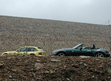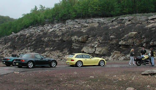 I wish we had pics of Klaus hanging over Emmy's windshield or draped backwards over the passenger seat as we drove alongside Andy in LZ02 for the moving shots. Well now, that was a good day's work/fun. LZ02 from Cincinnati, Ohio leaves her autograph in the mud in Eastern Pennsylvania. Another typical BMW inspired day of making friends and having fun over our cars. We left Andy at the entrance to Interstate 80 heading west around 5pm I think. Andy got home at 9am the next morning. Andy writes: I drove pretty much all night. I slept a few hours in a Bob Evans Parking lot. Got hit by a nasty rain storm around 11, I was going 35 on the highway with the wipers at max and still had little visablity. Thanks heavens for the rear fog light!!!