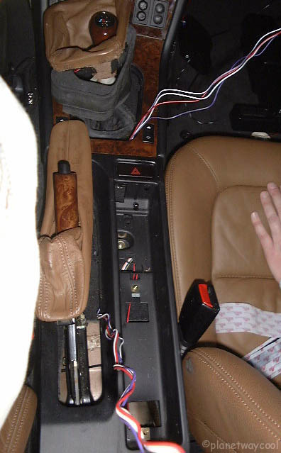 what I had learned![]() installing leatherZ armrests in '99 to remove the center armrest, raise the shift boot and emergency brake boot and storage cup. Begin placing the LED, Cutoff Switch, Space Shield, feeding the wires through the center of the car using all these openings. There's all kinds of places to use. Some hide their switch in a cutout in their center armrest. If you need to remove the lid in the center armrest: You grab the rubber with a tweezer or crochet hook and squeeze it past the post on the top. Do this for both sides. Then lift to top off. The rubber band stays on the metal rod. If you need to remove the center console, here's Fred Kern's instructions. |