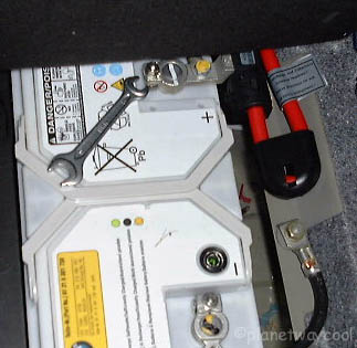March 5, 2001 Tom M writes: When you refer to disconnecting the battery you should mention disconnecting the negative wire first. Otherwise, if you put a wrench on the positive wire and it touches the metal chassis a short circuit will result. You can be burned by the arc it creates, or in the worst case the battery can actually explode! People have been blinded or even killed this way. Reconnecting goes in the opposite order, the positive first and then the negative. Safety glasses are a good idea on this part of the job. Uhm, I wish I knew that before we did it. I believe we just undid the positive. I am very happy we didn't blow up. ![]() Note the wrench from the Z3 Tool Kit used to loosen the battery cable. You will also need something that doesn't carry current to keep the terminal from making contact with the battery while you work. Disconnect the battery before you remove the glovebox. |