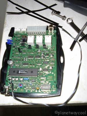 Open the UNGO cpu to adjust the jumpers according to your choice from the manual. Harvster had preset mine. We reset some of the options. Note the nut and bolt and wrench (from Z3 toolkit?). Trying to use that wrench in the awkward position in the engine compartment tightening the nylon threaded nut on the siren was not fun for Dave T. No way was I doing it! |