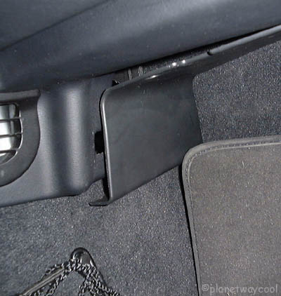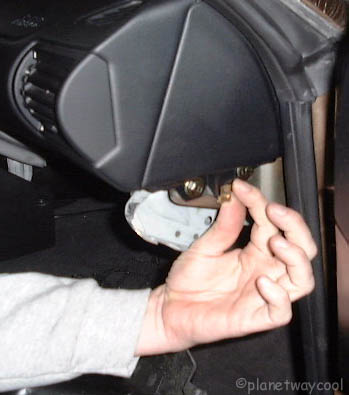 Remove black plastic panel behind bottom of glovebox. There are three plastic bolts. One in the front middle and two in the back corners. |