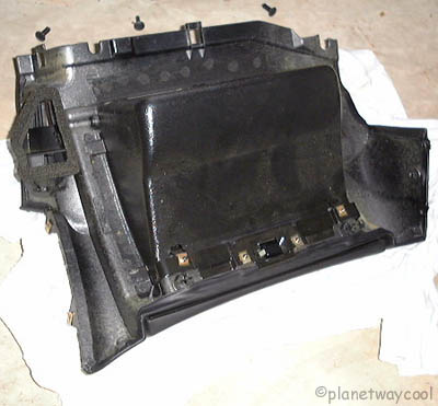 Dave T's glovebox coming out Pull the console flap out and maneuver the left side of the glovebox free of the console by rotating clockwise. Be carefull not to scratch or break the left hand part of the glovebox. |